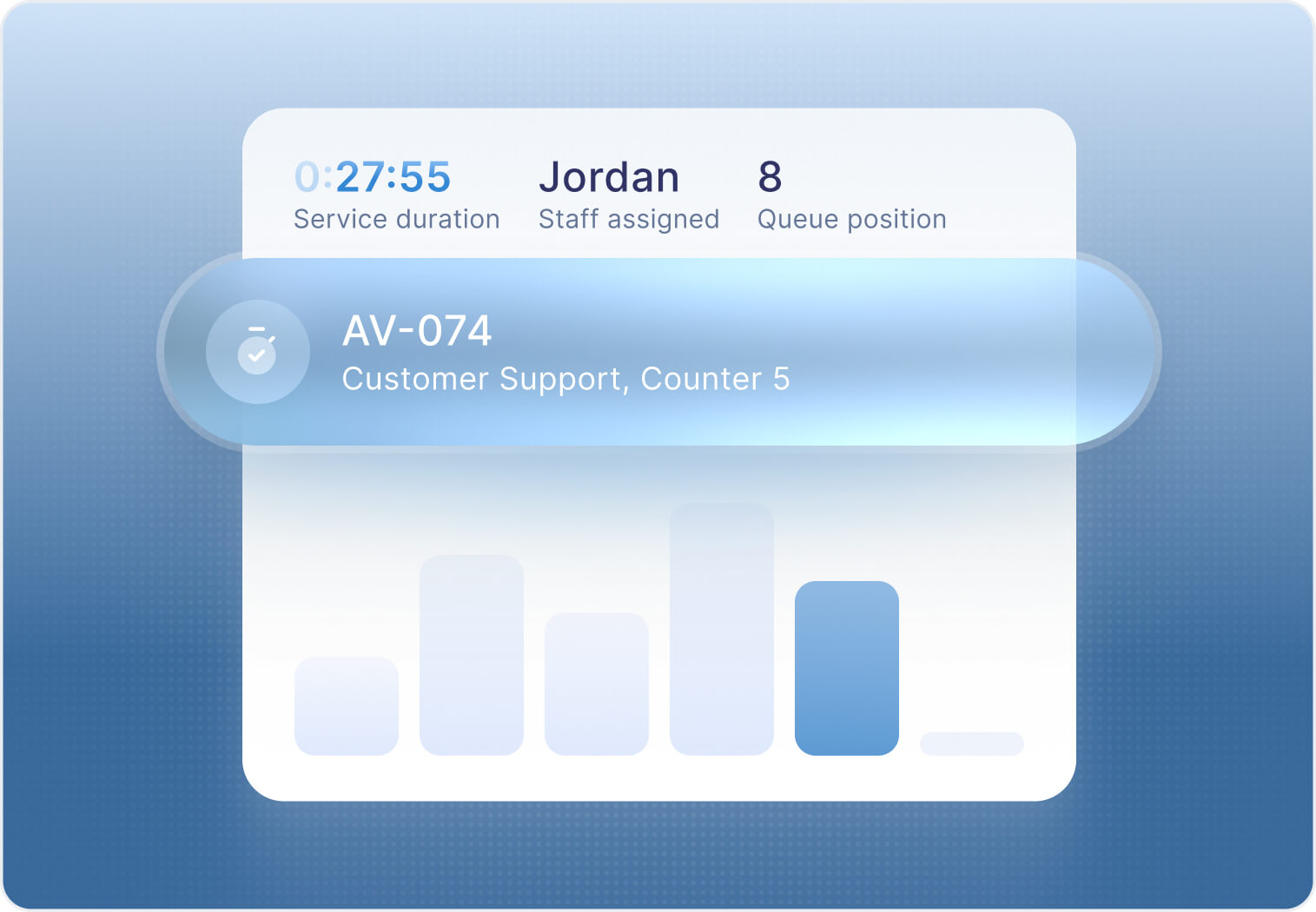 With an easy-to-follow system, customers can join the queue remotely, wait comfortably, and receive timely updates—while you track performance and manage the flow